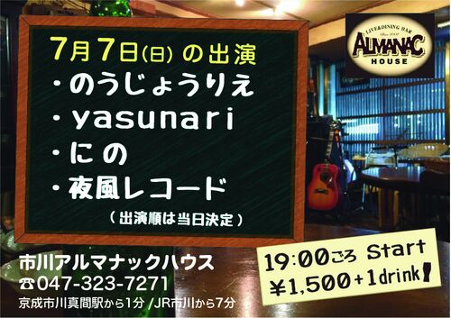 天の川なんて、肉眼じゃもう何十年もお目にかかっておりませんが、歌の中ではしょっちゅう口にしている夜風レコードです。 今年はアルマナックハウスで、天の川を渡ろう。 去年みたいにスマホを落とさないようにね(言われる前に言っとく。苦笑)。 7月7日(…