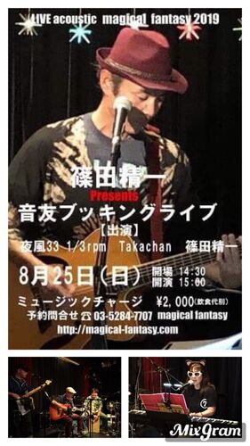 明日25日は北千住マジカルファンタジーの篠田さんLIVE 『音友ブッキングライブ』で夜風33 1/3rpmが歌い散らかします♪ 私ら夜風33 1/3rpmはトップ、15時から。 続くキーボード弾き語りのTakachanさんは、先月マッシュでご一緒した「WizT Sperior」でキーボー…