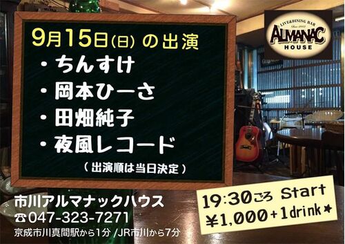一気に秋深し。気持ち良いからって外で寝たらいかんばい‼️さて明日は久々ひとり弾き語りするけん(^^)連休の中日、旅の空から寄り道していかんね?9/15(日)19:30 start「アルマナックハウス/ブッキングライブ」市川 アルマナックハウス https://almanac-te…